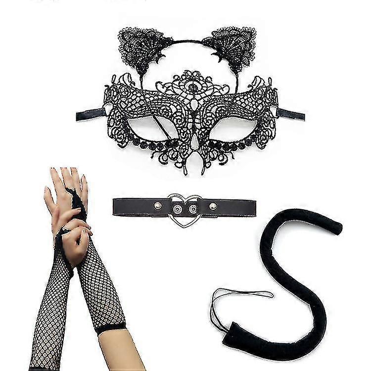 5pcs/set Cat Ears Headband Mask Necklace Gloves Sexy Cat Costume Set For Party