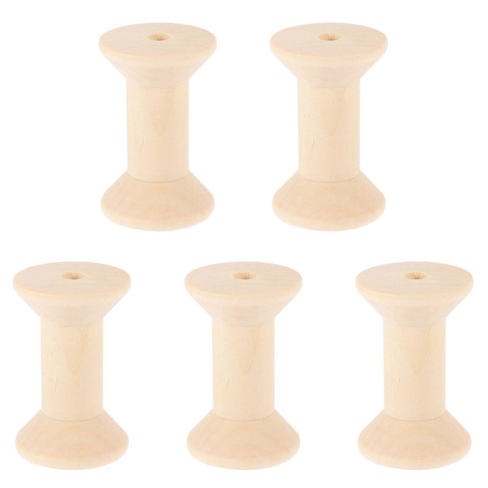 5pcs Sewing Thread Spools Natural Wood Winding Spools DIY Craft Bobbins