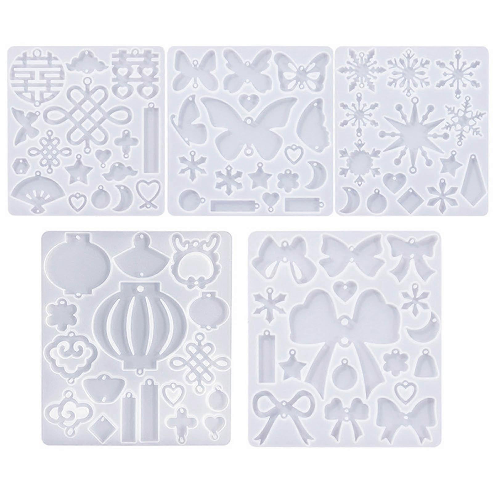 5pcs Snowflake Earrings Epoxy Resin Molds Silicone Mold Chinese Knot Pendant Casting Molds with Hole DIY Crafts Making