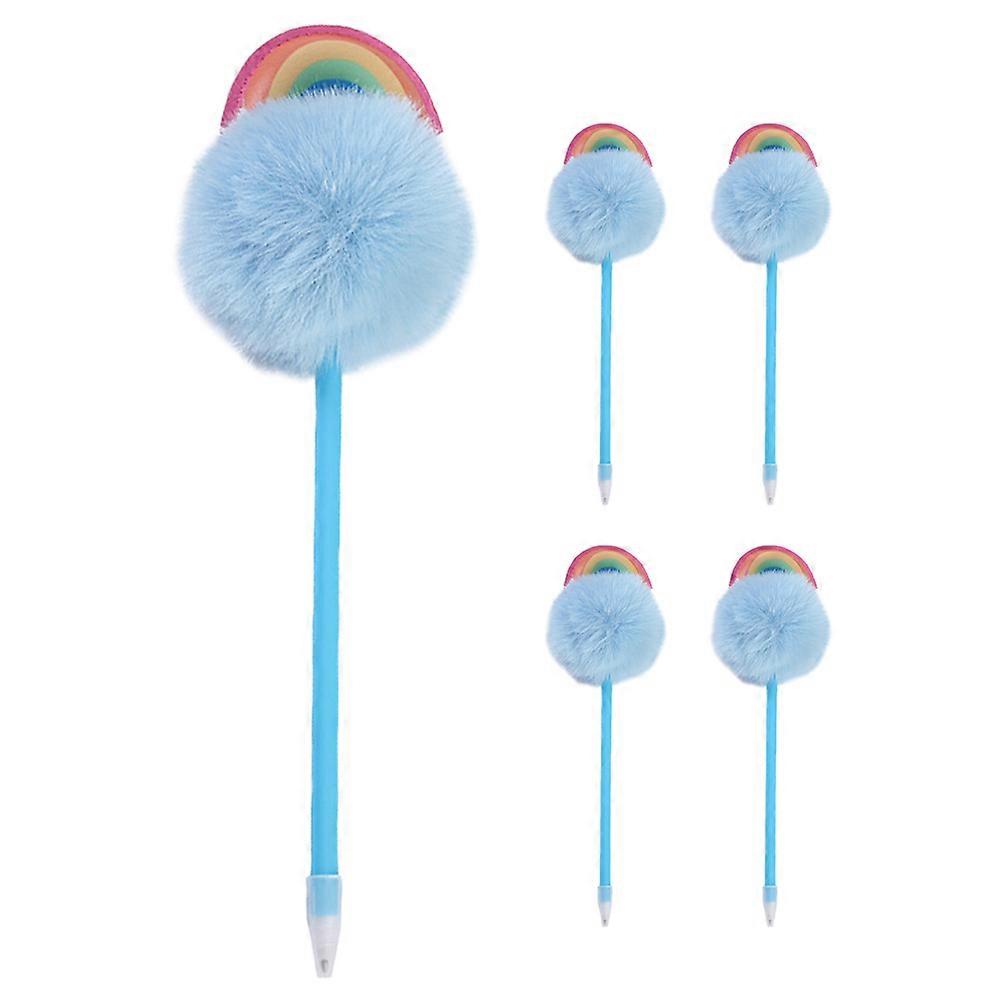 5 Pcs Kawaii Pompom Ballpoint Pens – Adorable Fluffy Toppers for Creative School Supplies & Stationery for Students & Teachers