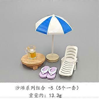 5pcs Beach Miniature Dollhouse Decorations Mini Beach Umbrella Chair Toys Micro Landscape Accessories for DIY Fairy Garden Decorations