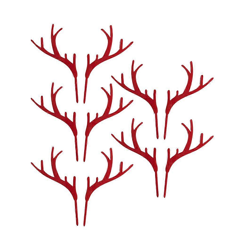 5pcs Christmas Antlers Shape Cake Topper Exquisite Dessert Decoration Cupcake Toppers Fruit Picks for Party Festival (Red)