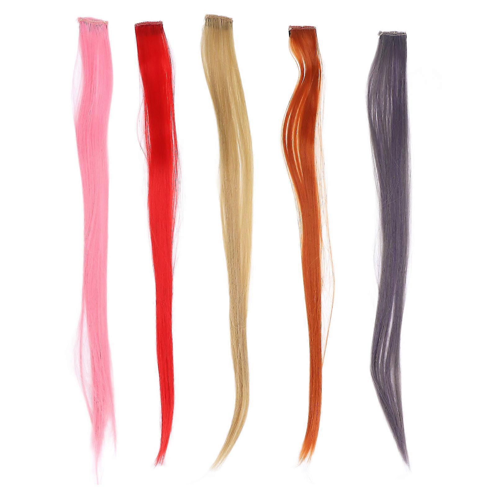5pcs Hair Extension Hairpiece Stylish Colored Straight Synthetic Clip In Hairpiece for Cosplay Party