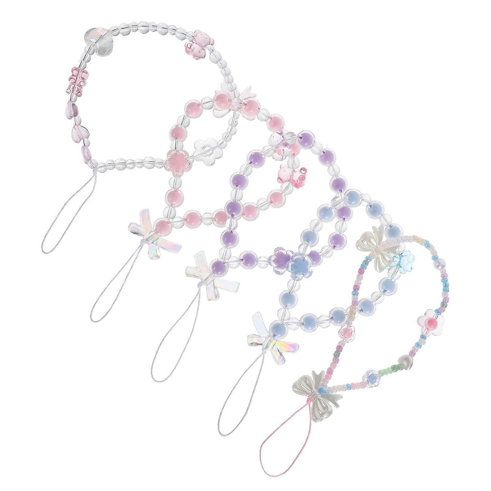 5Pcs Beaded Phone Lanyard For Women Daily Activities Cute Phone Chain Decoration Anti-drop Cord