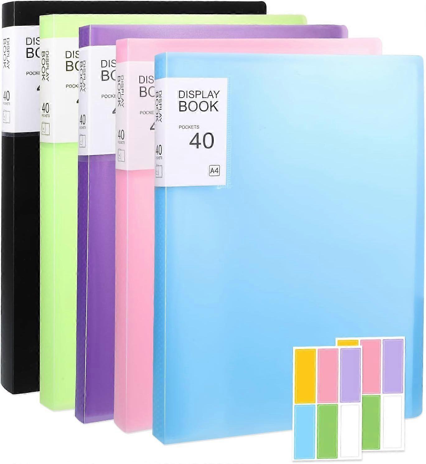 5 Pcs Art Portfolio Folder: 40 Pocket Binder with Plastic Sleeves - A4 Presentation Book Document Paper Organizer for Artwork Office Supplies