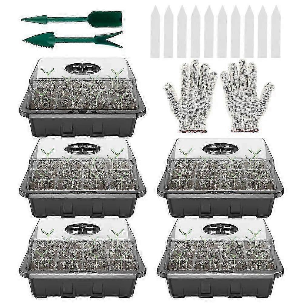 5pcs 12 Cells Plant Seeds Grow Box Full Spectrum LED Grow Light Seed Starter Kit Seedling Germination Trays