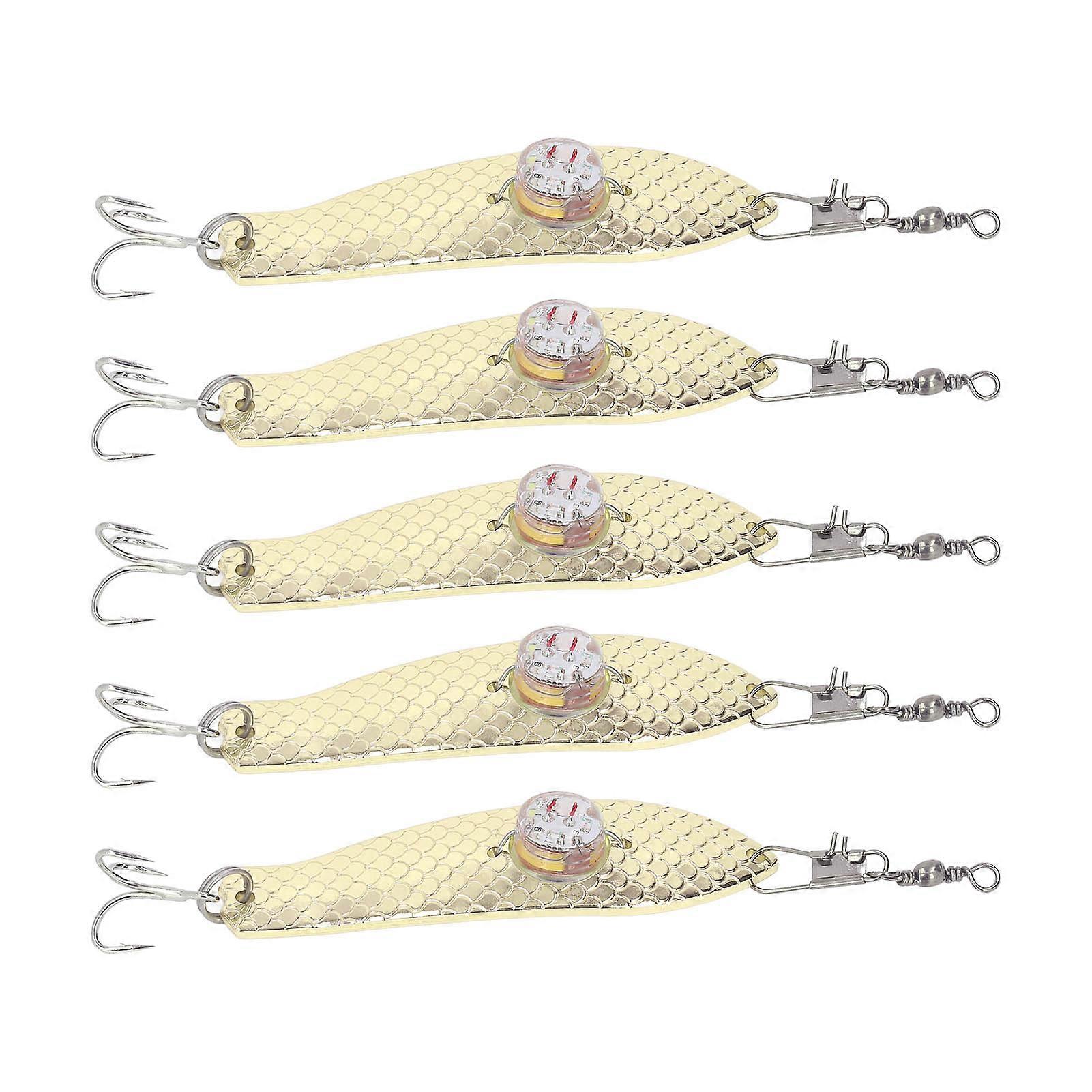 5PCS LED Fishing Lure Light Rustproof Stainless Steel LED Lighted Bait Flasher for Fishing Accessories Gold