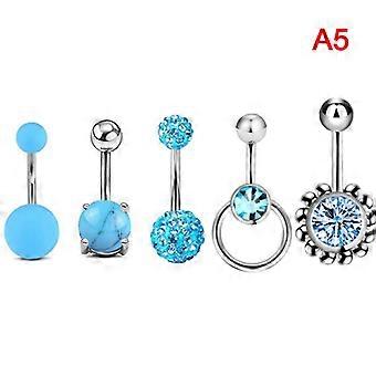 5Pcs/Lot Sexy Stainless Steel Belly Button Rings Set Zircon Soft Ceramic Umbilic