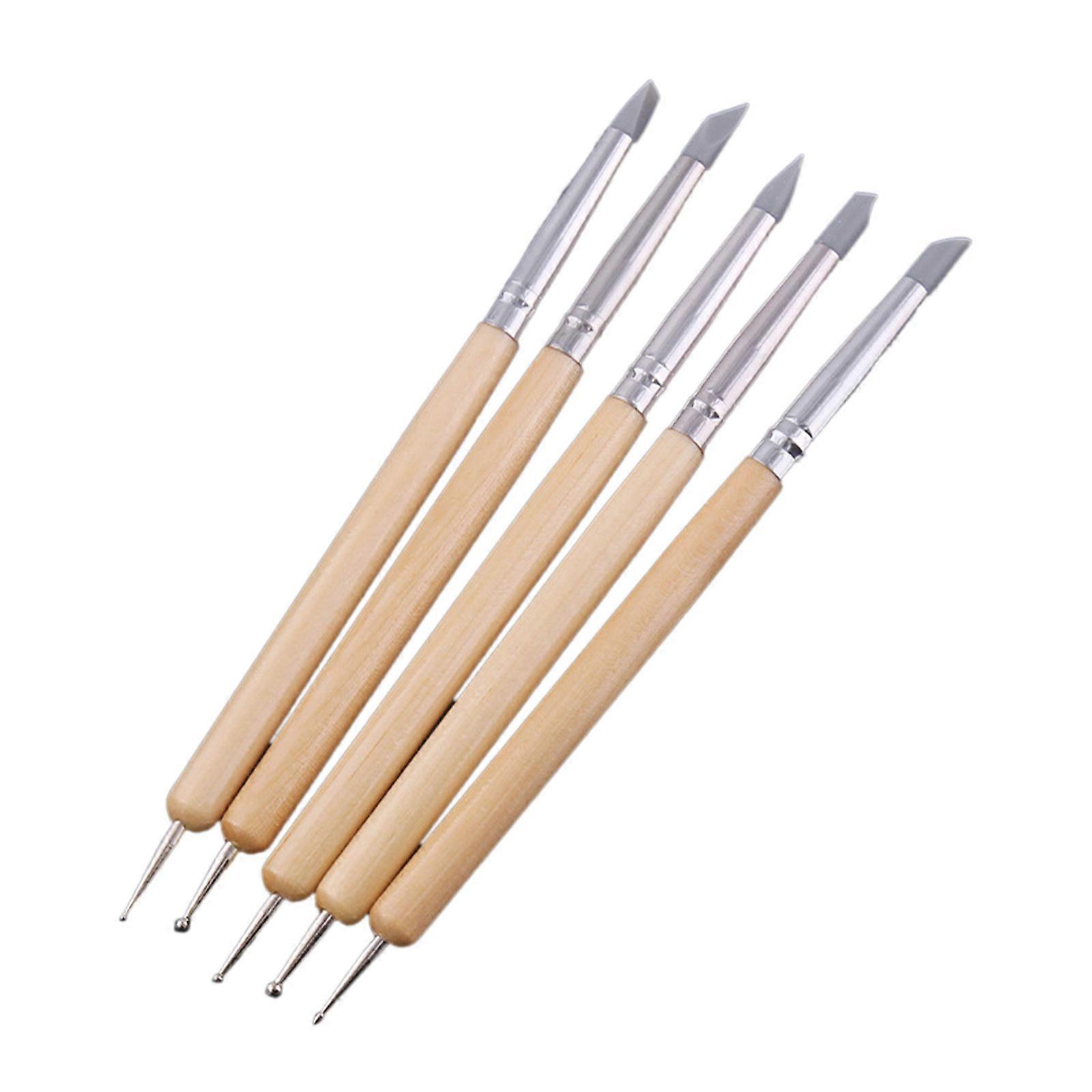 5pcs/set Clay Pottery Pen Modeling Crafts Making Household Accessory for Children Girl Boys Handicraft Portable Raw Wood Color