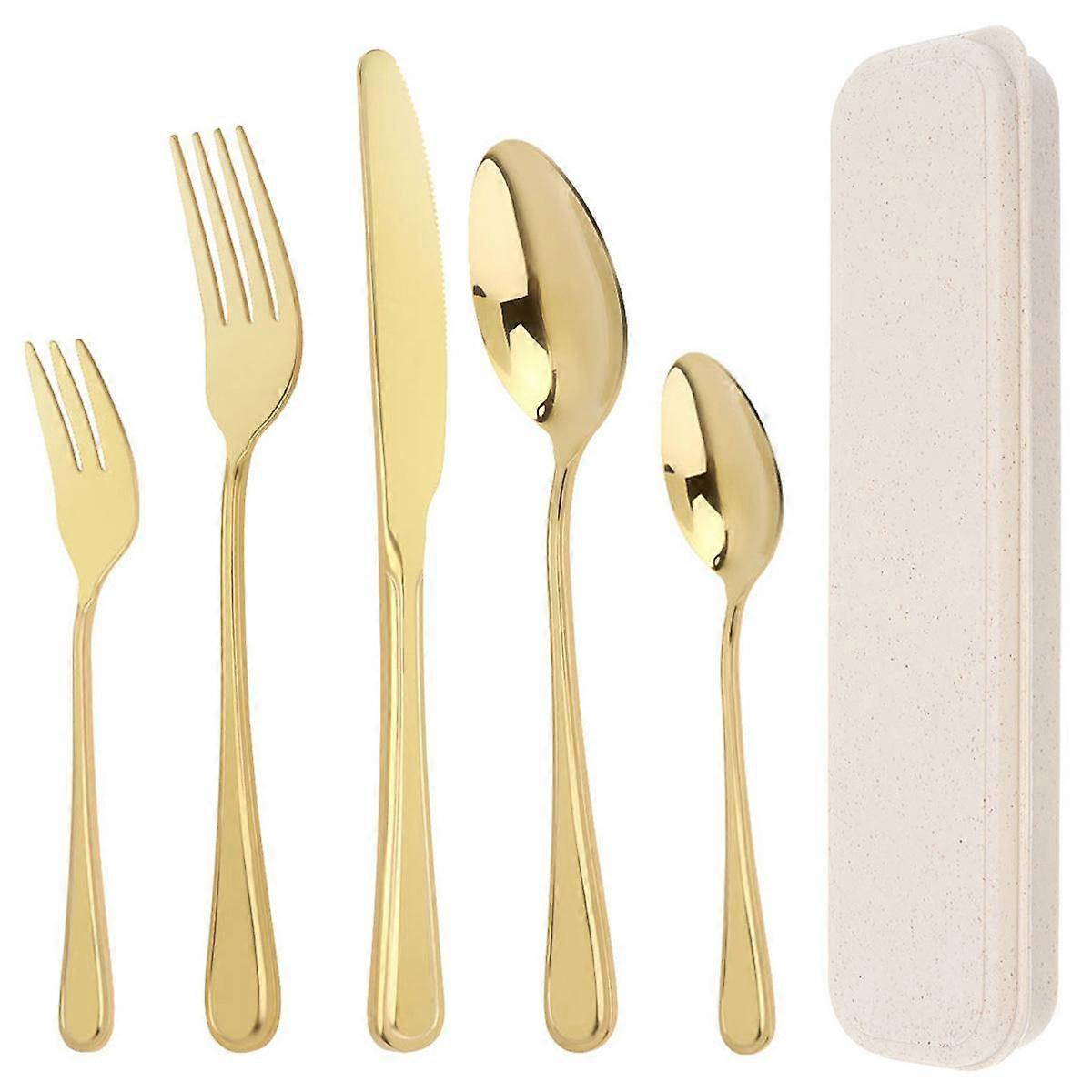 5pcs/set Portable Stainless Steel Travel Flatware Set for Camping Picnic / School Lunch / Daily Use with Tableware Box