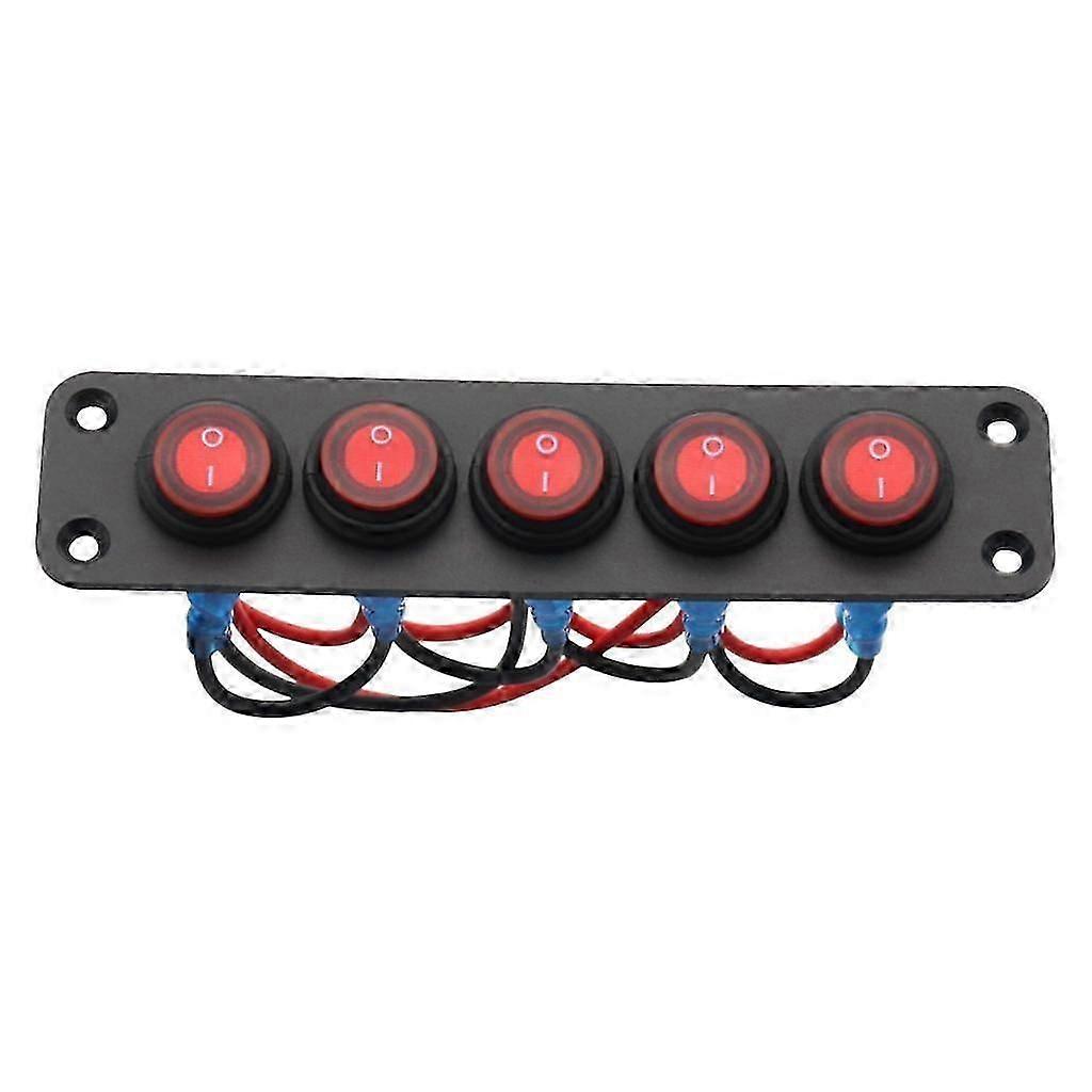 5 Gang Rocker Switch Panel Pre Wired Red for Automotive Caravan Bus