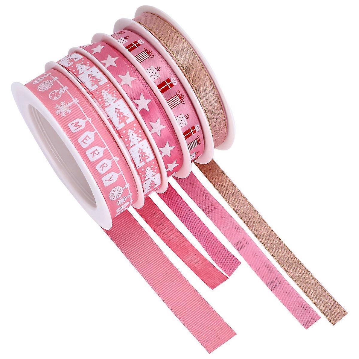 5 Rolls Christmas Printed Ribbon Decorative Pink Wrapping Ribbon for Holiday Crafts, Wedding & Party Decorations