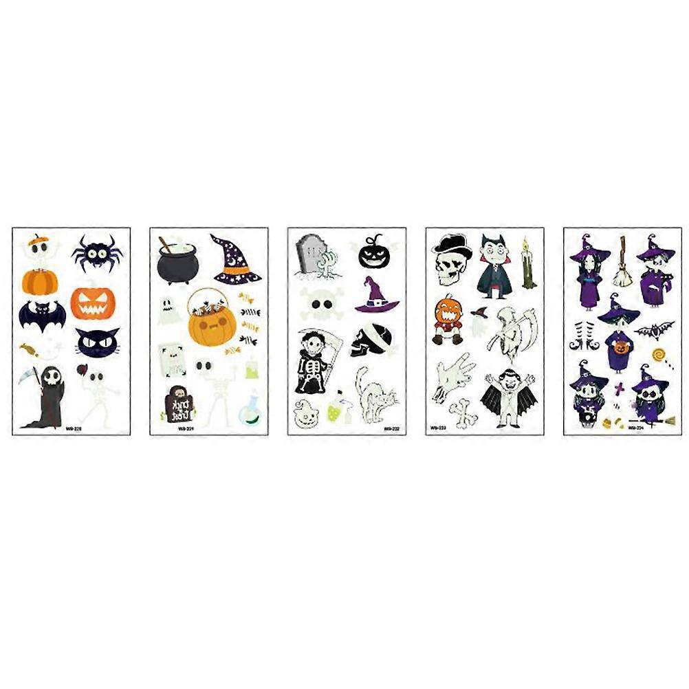 5 Pcs 10.5x6cm Halloween Luminous Stickers Cartoon Temporary Tattoos Waterproof Skin-friendly Sticker