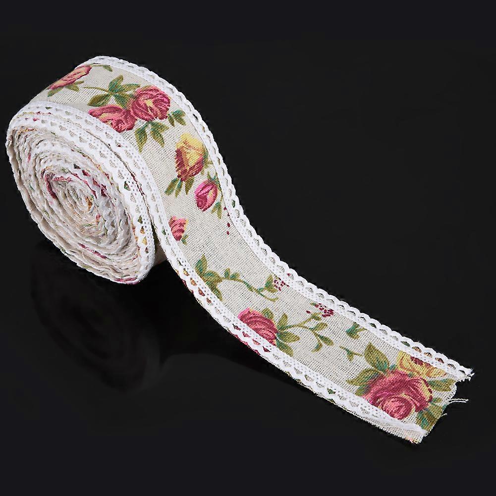 5m Red Lace Printed Burlap Ribbon Jute Belt Strap 5cm Wide