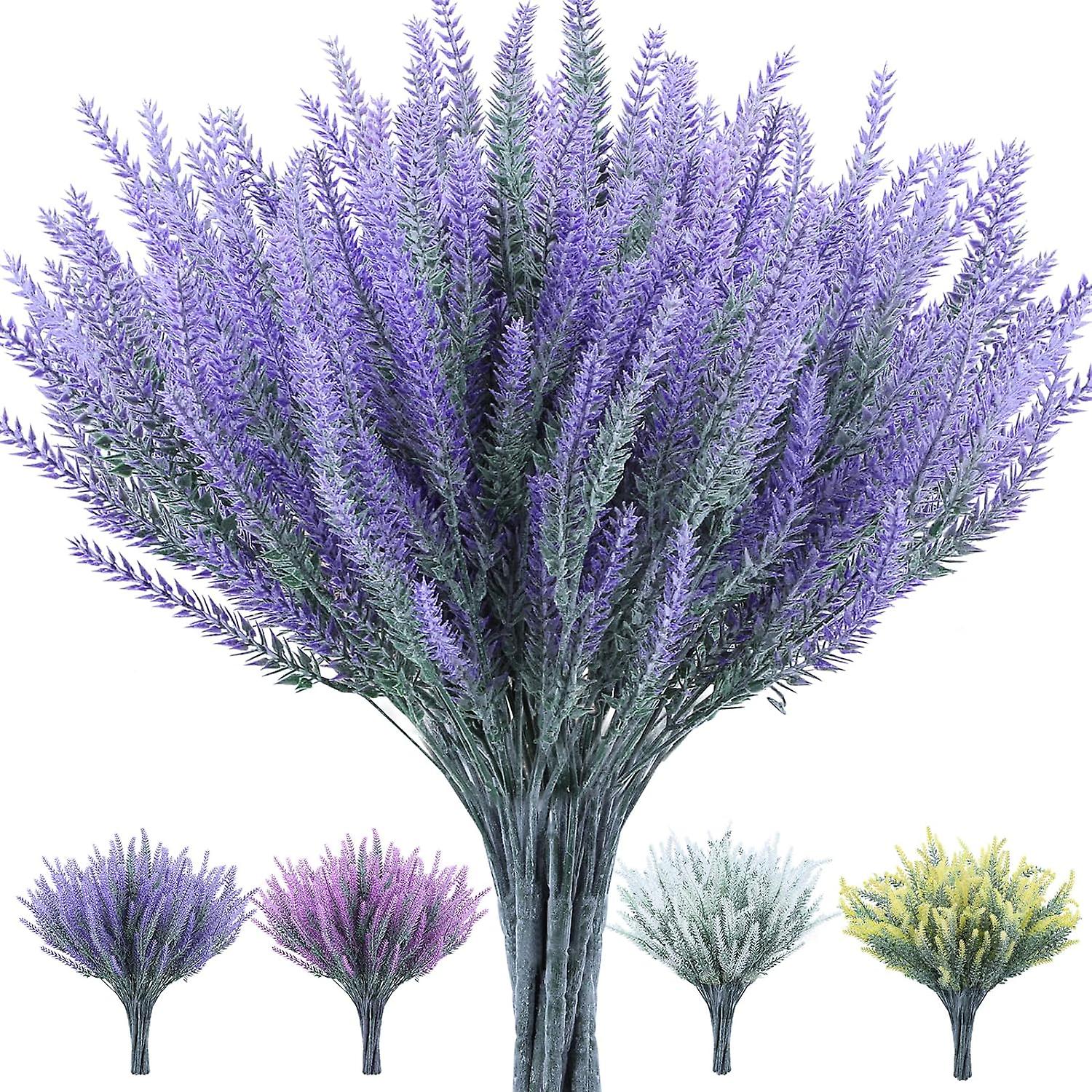 5 Bundles Artificial Flowers Flocked Plastic Lavender Bundle Fake Plants Wedding