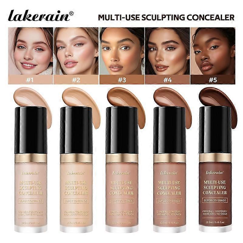 5 Counts Multi-Use Concealer, 3-in-1 Concealer + Contour + Highlighter, Full Coverage Concealer, Waterproof & Sweatproof, 13.5ml Large Capac