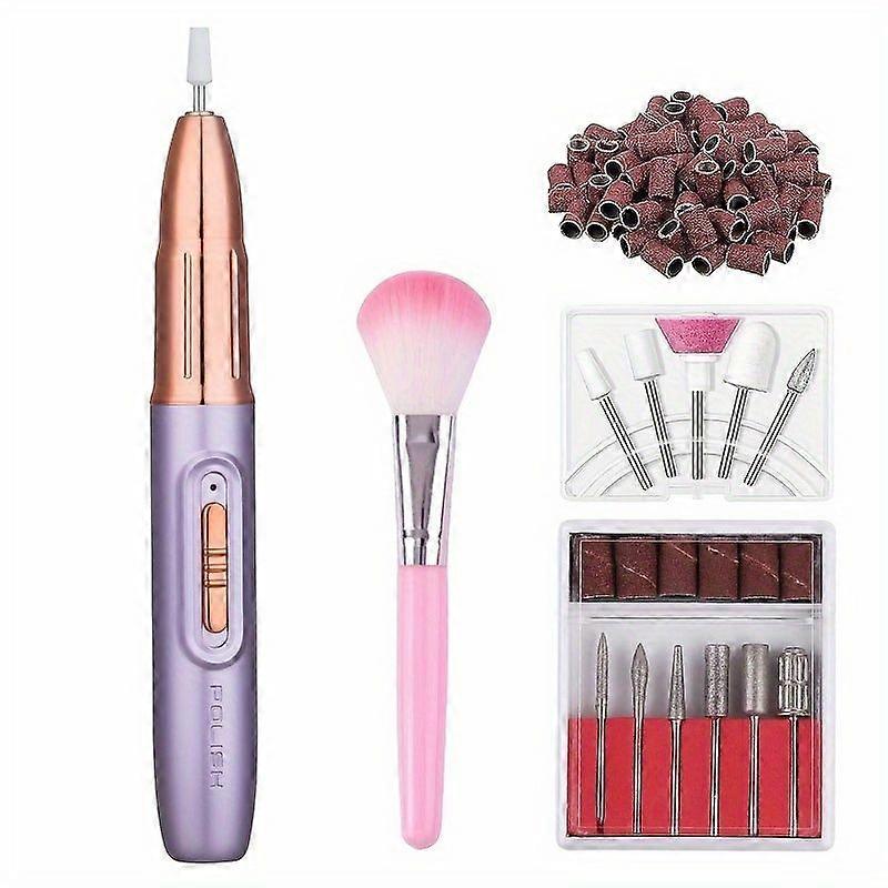 5 in1 Professional electric nail file USB Rechargeable Electric Nail Drill Manicure Pedicure Tool Purple