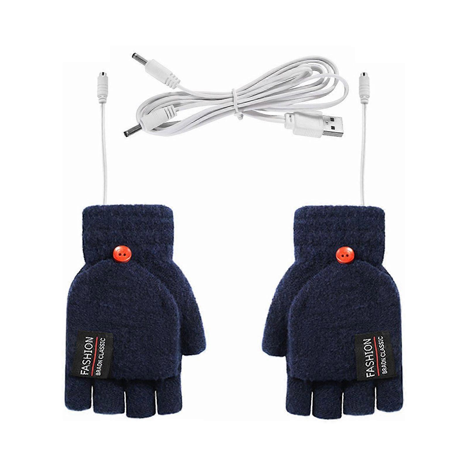 5% OFFNew Wool Knitted Fingerless Flip Gloves Double-sided 5V High-quality Comfortable USB Charging Solid Color Keep Warm Hot