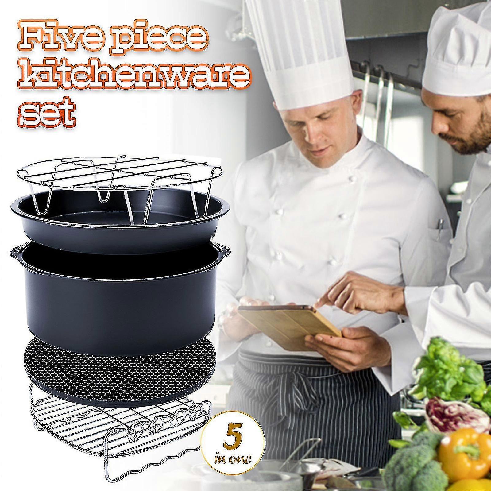 Air Fryer Accessories 5 Piece Cake Basket Set Electric Fryer For Pizza Baking Feature:Material: high quality carbon steel + non-stick coating.The 6-inch diameter is suitable for 2.3-3.2L capacity.Cake blue is suitable for air fryer oven/cake bread/steamer/steaming fish/steaming meat, etc.Pizza pan is suitable for air fryer oven to bake pizzas and scones.Balanced thermal conductivity: good thermal conductivity, even baking heat, beautiful finished products and short time.Hard film features: surface hardness, abrasion resistance and scraping resistance, temperature resistance 220 degrees Celsius.Non-stick features: surface non-stick coating, easy to mold, belongs to the soft film, pay attention not to use sharp tools and tools scrape the surface, temperature resistance 180 degrees.The edge is larger and the edge is more comfortable.One - piece molding process beautiful appearance, easy to clean.Notes:The real color of the item may be slightly different from the pictures shown on website caused by many factors such as brightness of your monitor and light brightnessPlease allow slight manual measurement deviation for the data.Package Content:1xFryer access-ories