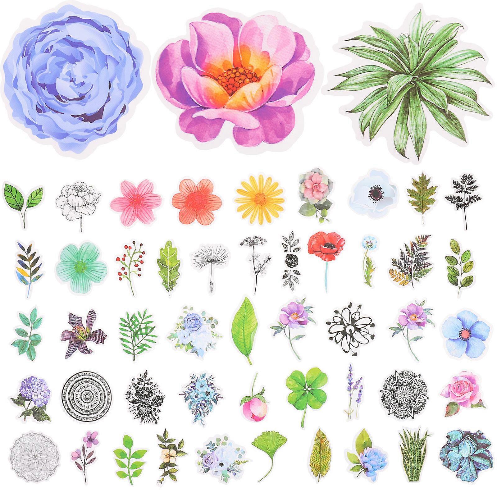 50PCS Flower Stickers Decorative Water Bottle Decals Durable Adhesive Plant Stickers for Laptop Luggage Skateboard DIY Craft Projects