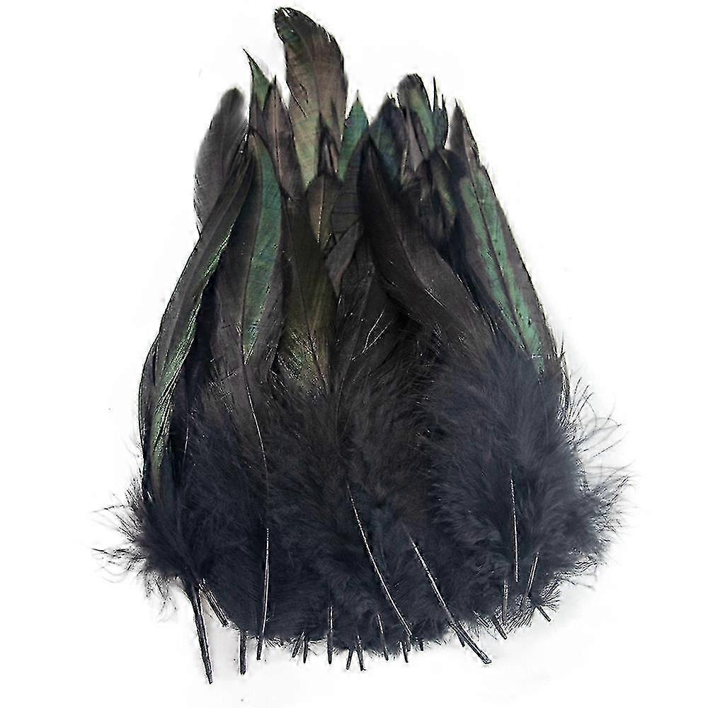 50 Pcs Natural Cock Tail Feathers 13-18cm Rooster Plumes Black Feather For Carnival Halloween Christmas Crafts Decoration 2025