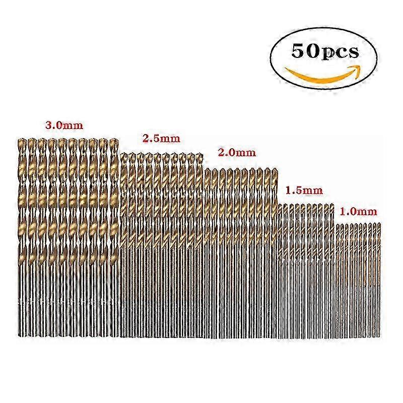 50pcs Mini Twist Drill Bit Set High Speed Steel Titanium Coated Woodworking 1/1.5/2/2.5/3mm 2025