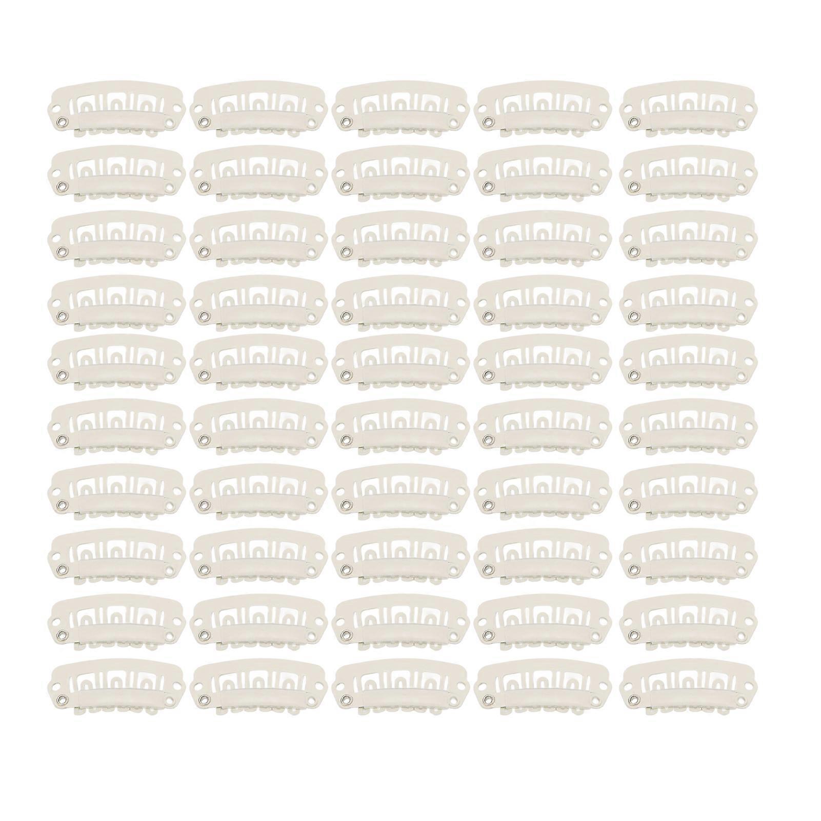 50pcs Wig Snap Clips 6 Teeth U Shape Hair Extension Clips with Rubber Grip Beige Durable Secure Fastening