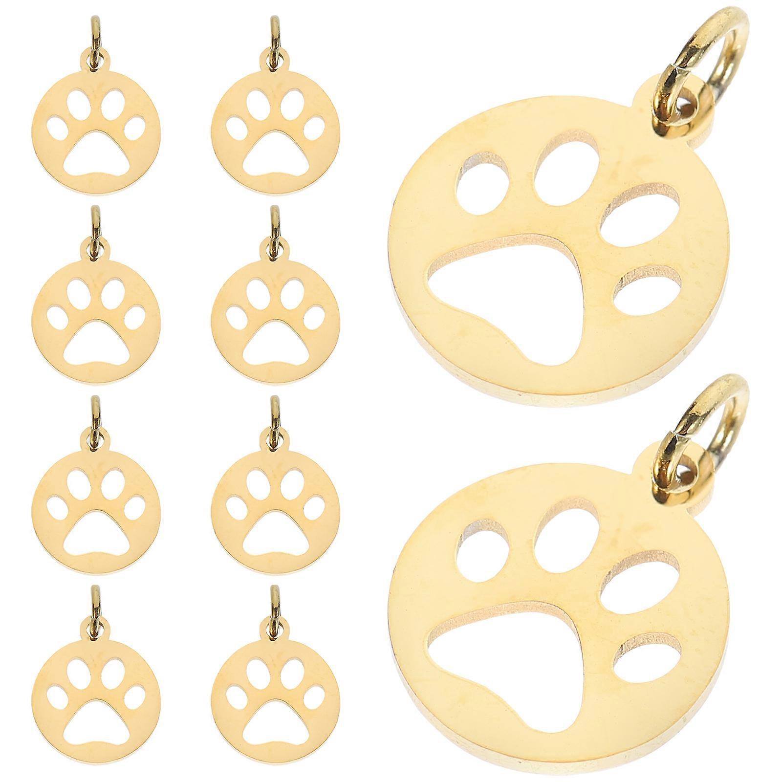 Dog Paw Stainless Steel Charms for Jewelry Making Golden Hollow 50Pcs