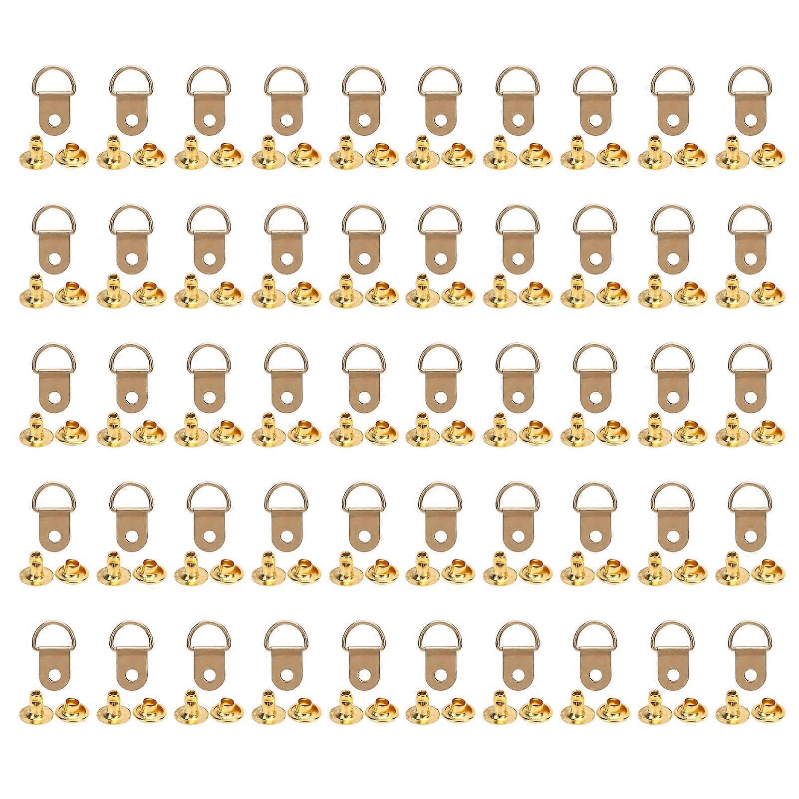 50 Set Shoe Boot Lace Hooks with 8mm Iron Rivets Loop D Ring Buckle Metal Repair Accessories Gold