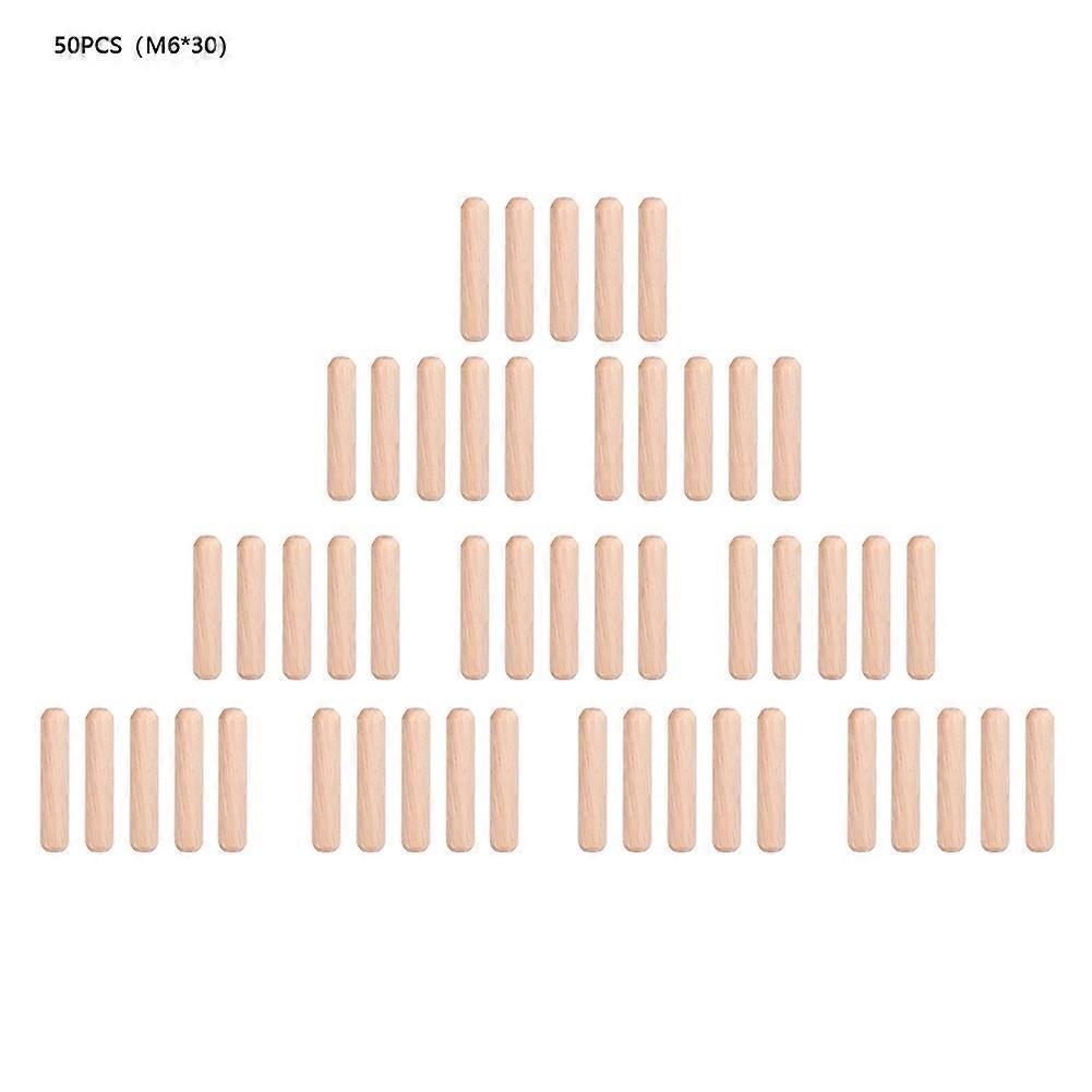 50pcs Cabinet Drawer Round Fluted Wooden Craft Dowel Pins Rods (M6*30)