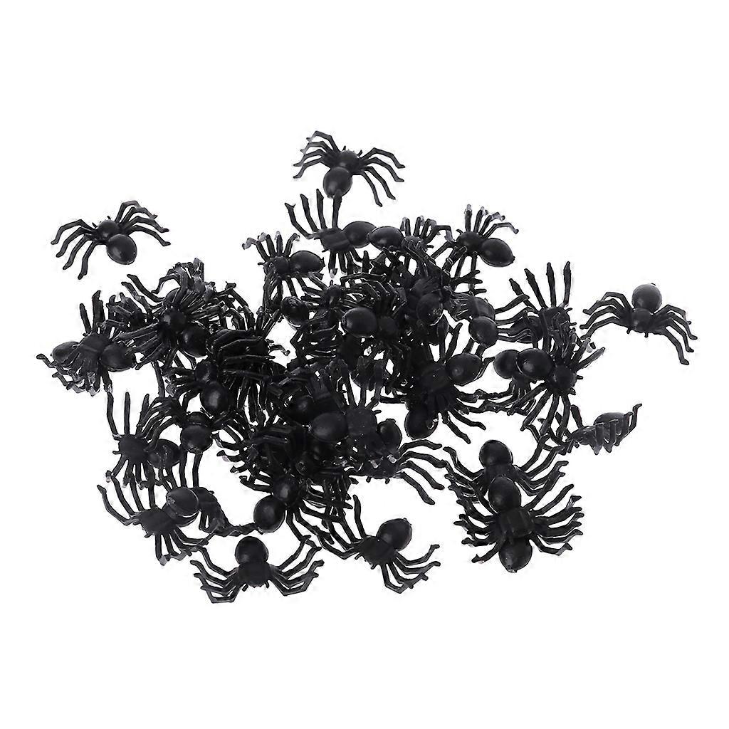 50Pcs Small Black Plastic Fake Spider Toys Funny Joke Prank Props Halloween Deco