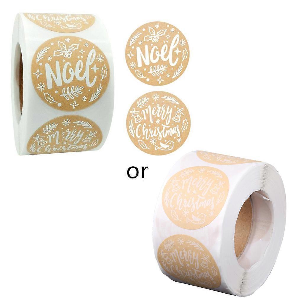 500 Pieces/Roll Kraft Paper Xmas Stickers Roll Christmas White Font Stickers