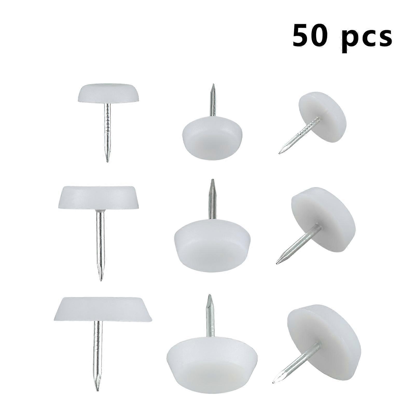 50pcs White Nylon Wooden Chair Table Furniture Leg Bottom Feet Plastic Pad Glide Skid Nails Floor Protector 14/18/20mm Diameter