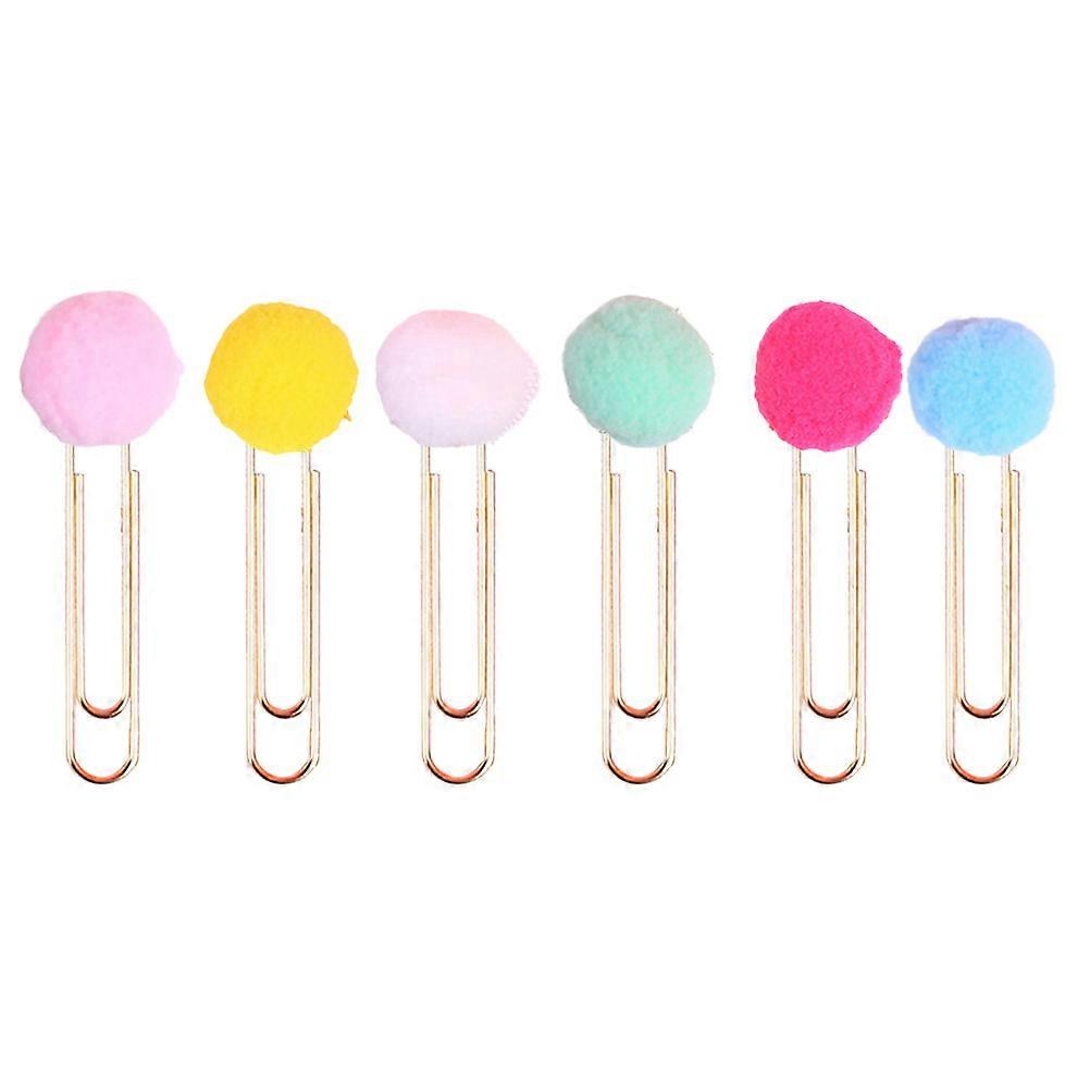 50PCS Creative Metal Bookmark Color Hair Ball Paper Clip Creative Bookmark Paper Clip(Random Color)