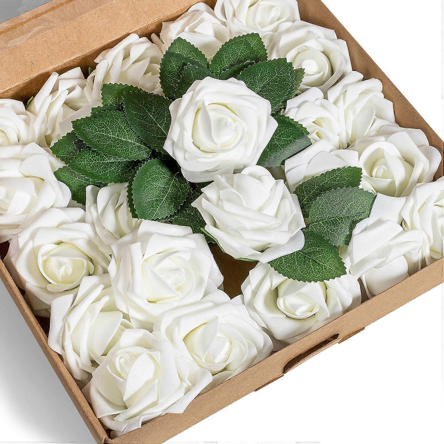 50pcs Artificial Flowers Ivory Roses - Real Looking Fake Flowers w/Stem, DIY Wedding Decor for Ceremony Faux Flower Garland Reception Bouquet Centerp