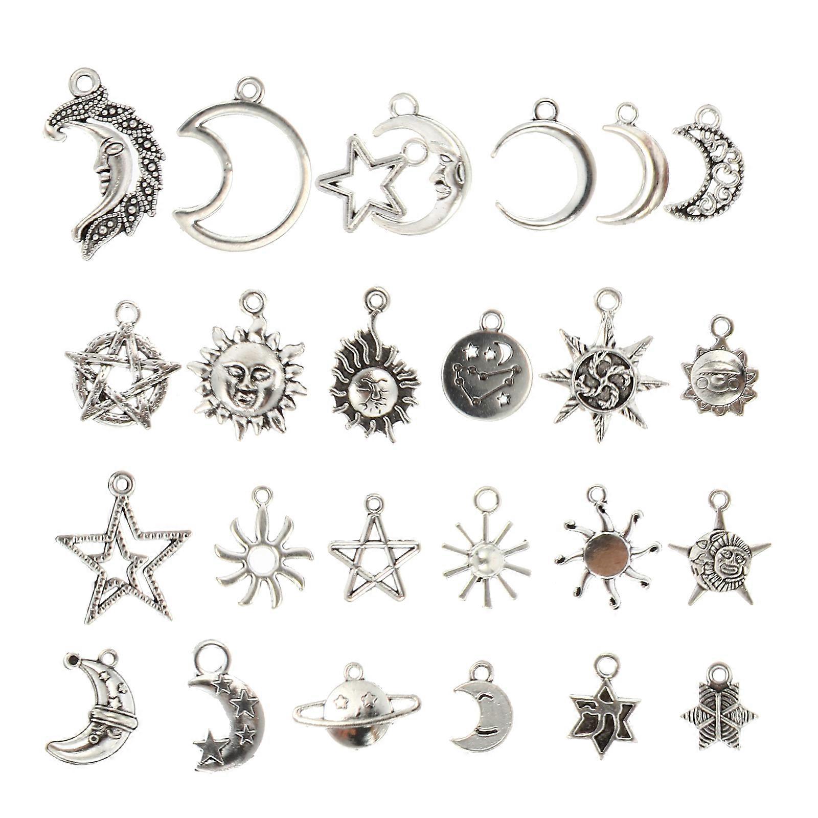50Pcs Jewelry Charms Antique Sun Stars Moon Charms Pendants for Jewelry Making