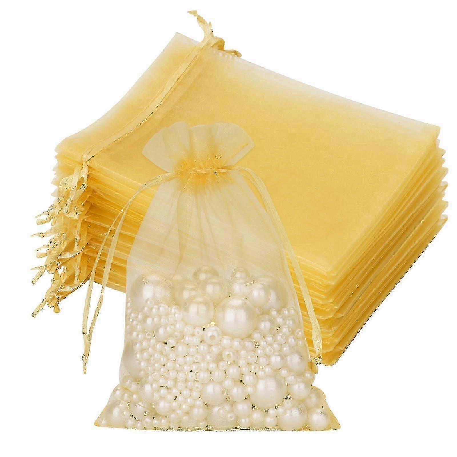 50Pcs Gold Sheer Tulle Organza Gift Bags Wedding Favors 4"x6