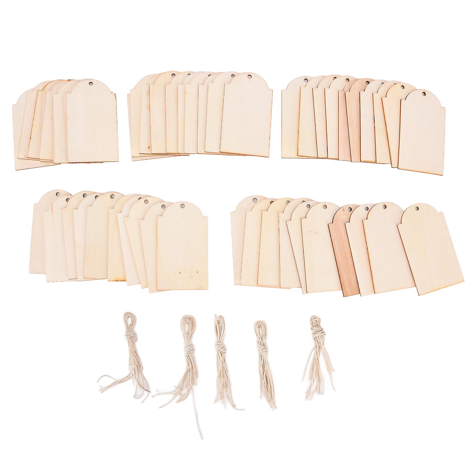 50pcs Wood Pieces DIY Natural Rustic Unfinished Wood with Hemp Rope for Handicraft Bookmarks Gift Labels Decoration