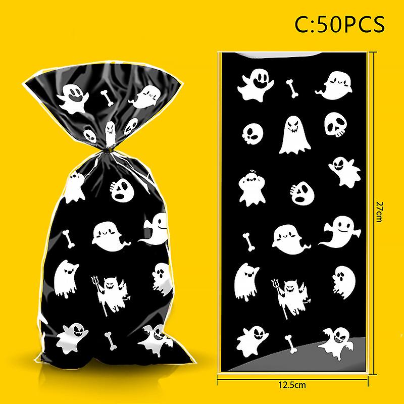 50pcs/pack New Halloween Candy Bag Pumpkin Halloween Gift Bags Plastic Treat Packing Bags Halloween Party Decoration Supplies