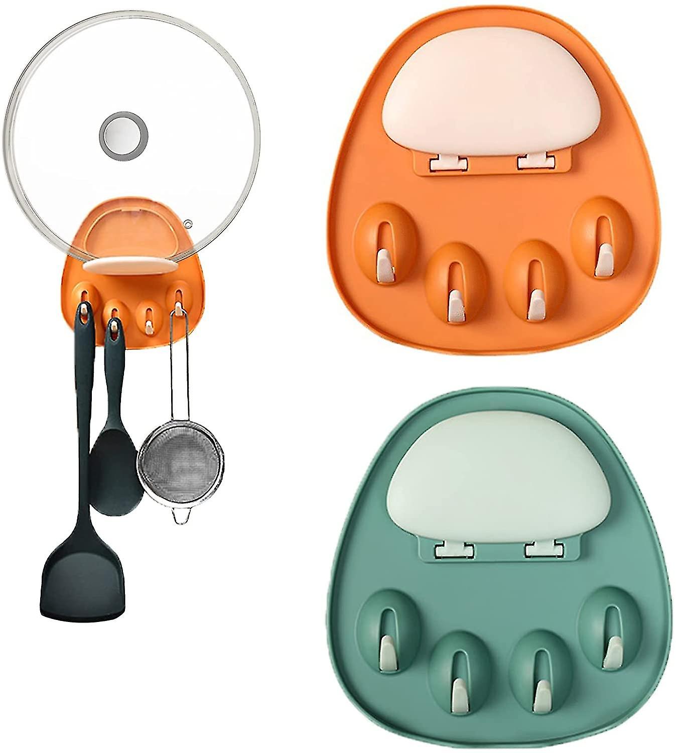 2 Pcs Wall Mounted Pot Lid Holder, Adhesive Pot Lid Holder Adjustable Lid Holder Pot Holder