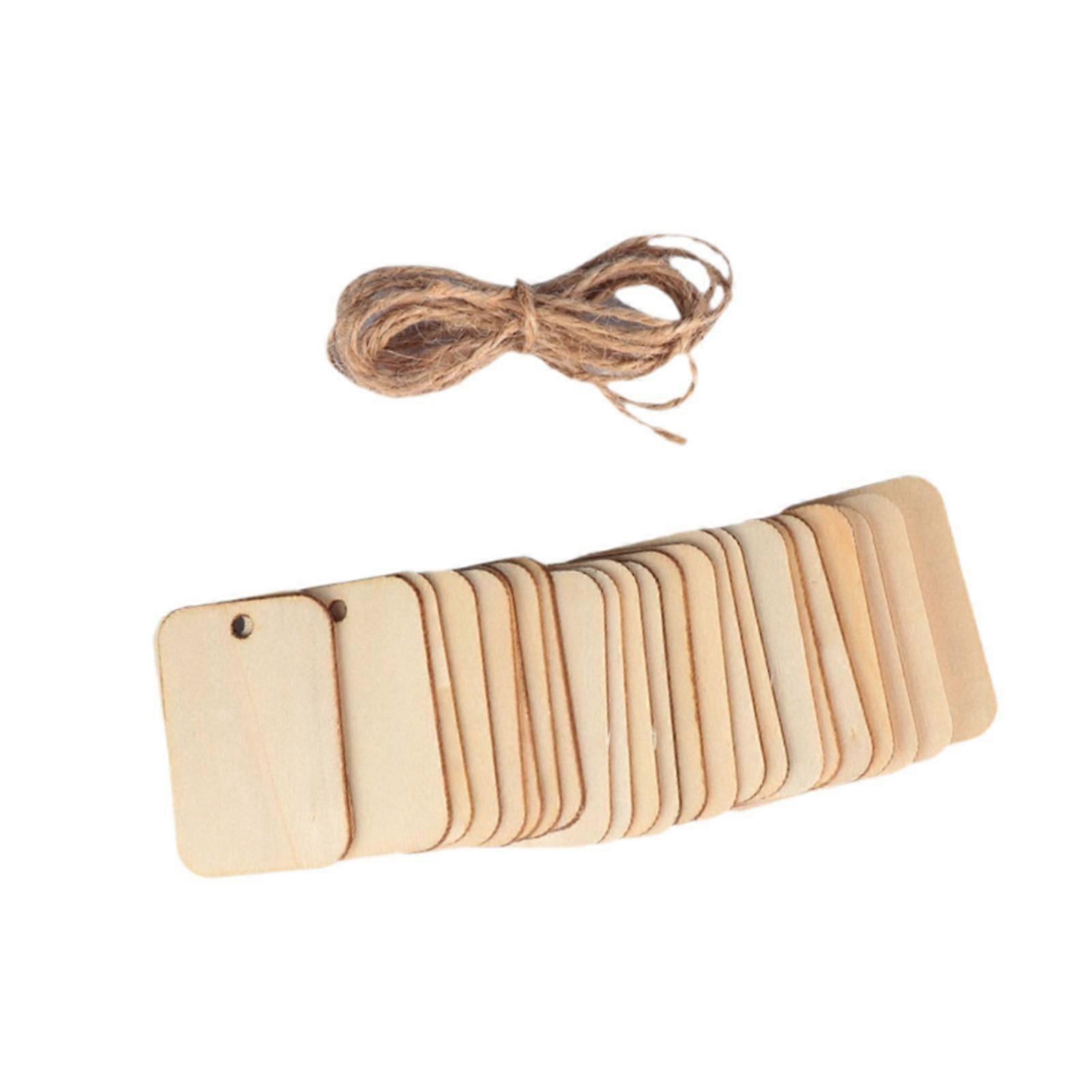 50x Wooden Tags with Holes Present Tags for Party Crafts Hanging Decorations