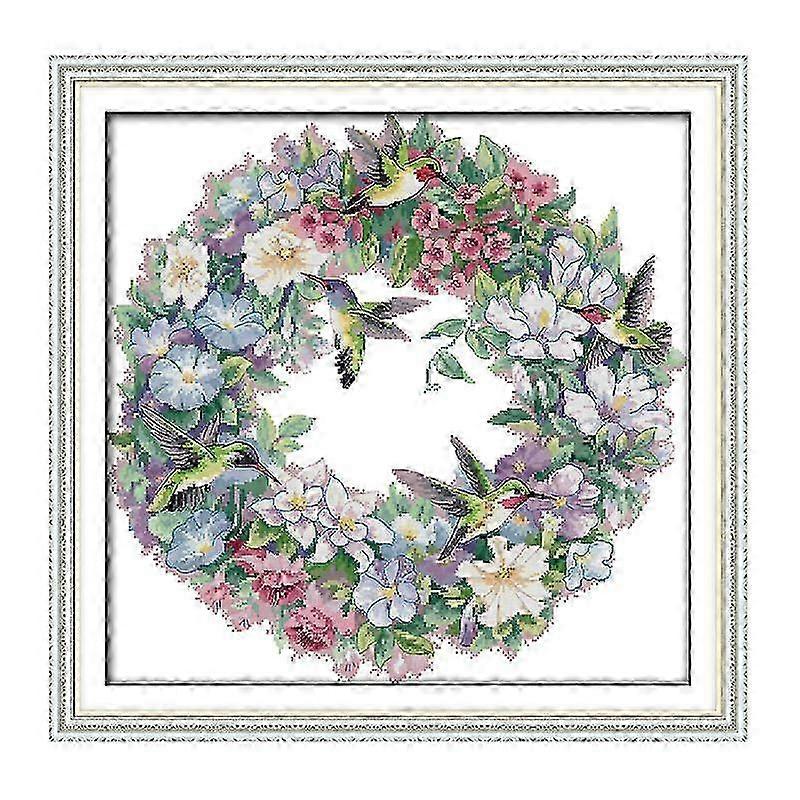 51 x 50 cm DIY handmade needlework fabric and cotton threads embroidery kit featuring a flowers and birds design, perfect for hand-embroider