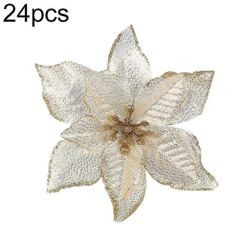 5/10/24Pcs Artificial Christmas Flower Glitter DIY Wedding Holiday Party Decor BoSaiD