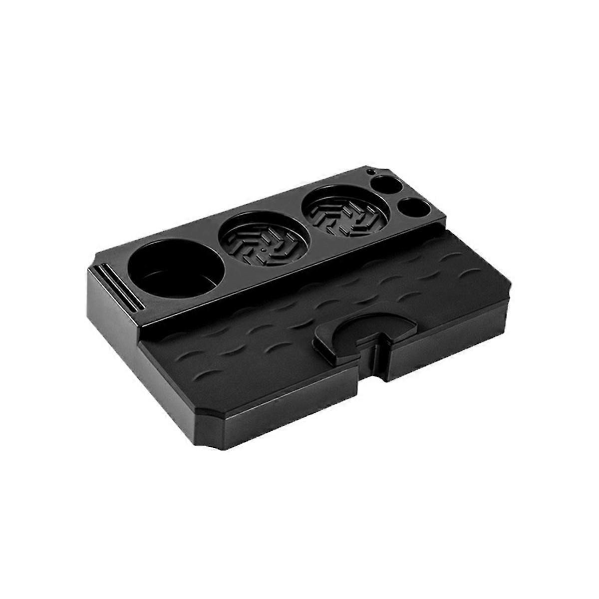 Enhance your espresso experience with our Coffee Tamper Station, a vital accessory for any . Designed to improve tamping precision, this station also protects countertops from damage and keeps your workspace neat. Constructed from high-quality, food-grade ABS, our tamper station features innovative grooves that securely hold coffee tampers and portafilters. This design ensures stability and efficiency during coffee preparation, making it a reliable tool for daily use. A must-have for both professional baristas and home coffee enthusiasts, our tamper station combines functionality with . It streamlines the coffee-making process, allowing for a more enjoyable and professional brewing experience. Ideal for any setting, whether a commercial coffee shop or a cozy home kitchen. Our tamper station transforms any space into an efficient espresso bar, enhancing both the aesthetics and functionality of your coffee preparation area. Our tamper station not only protects surfaces but also helps maintain a clean workspace by containing coffee grounds and spills. The raised edges prevent messes, making cleanup quick and easy, and preserving the cleanliness of your coffee station. Color: Black Material: ABS+Silicone Package Contents: 1 * coffee Tamping Station Only the above package content, other products are not included. Note: Light reflection and different displays may cause the color of the item in the picture a little different from the real thing. The measurement allowed error is +/- 1-3cm.