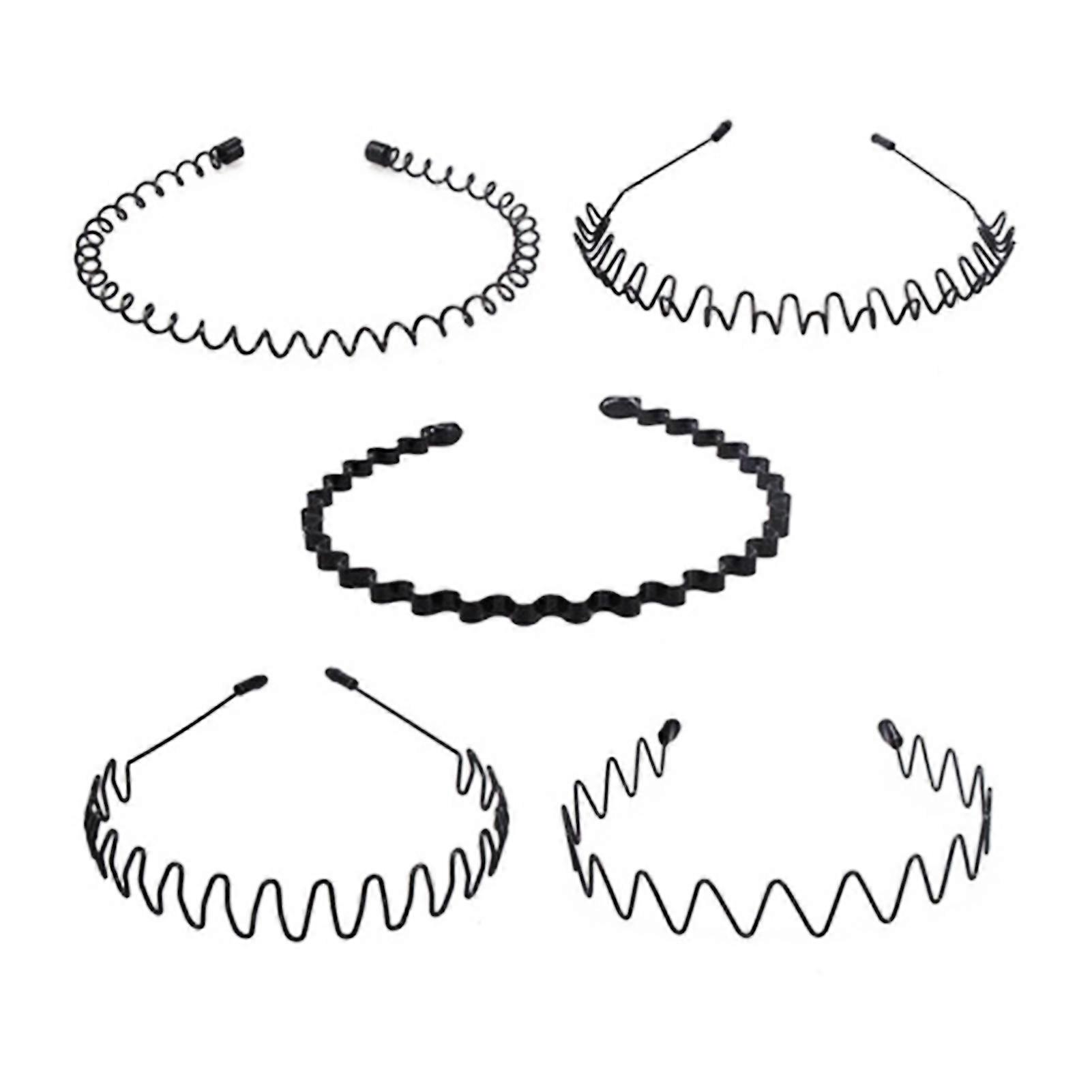 5/8/10Pcs Black Metal Headbands Unisex Spring Wavy Hairband Non-Slip Sports Hair Hoop for Men Women Fitness Daily Wear