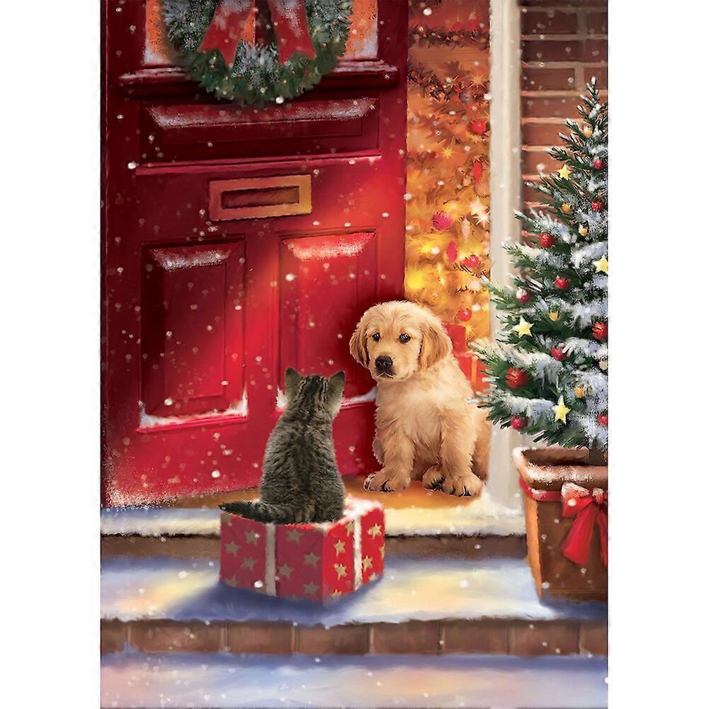 5D DIY Full Round Drill Diamond Painting Christmas Puppy Mosaic Kit Rhinestones Pictures Handmade Wall Art Craft for Home Decor