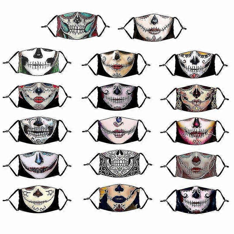 5pcs Skull Pattern Printed Horror Halloween Face Mask Washable Dustproof Adjustable
