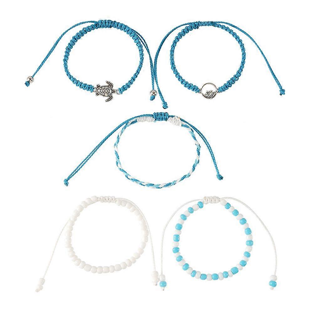 5Pcs Beach Braided Strings Rope Bracelet Woven Wrist Cord Turtle Bead Bracelet Jewelry