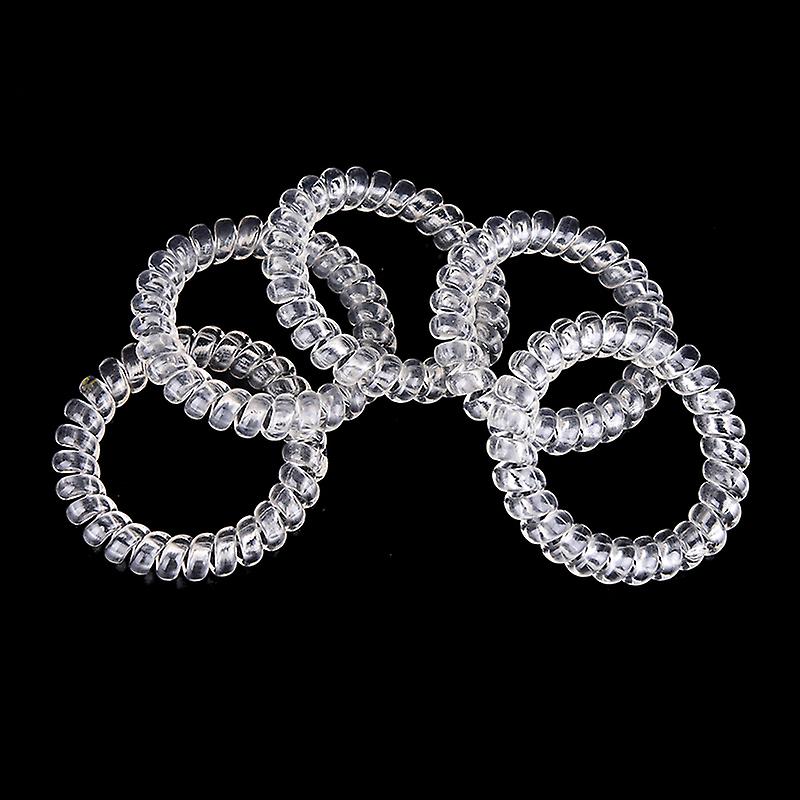 5pcs Lady Girl Clear Elastic Rubber Hair Ties Spiral Rubber Rope Hairband