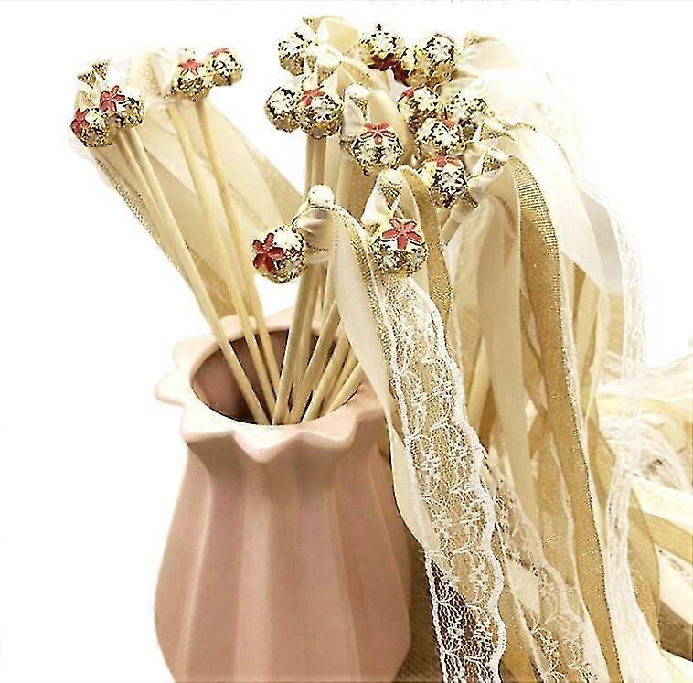 5pcs Ribbon Wedding Wands Wedding Lace Ribbon Stick Bells Twirling Streamers Hfmqv